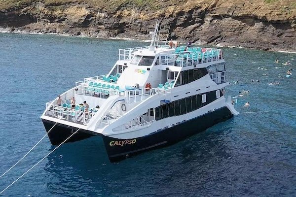 Embark on an unforgettable Molokini Crater adventure in Maui, a paradise for snorkeling enthusiasts. Delve into the vibrant marine world teeming with over 200 fish species. Encounter majestic mantas, graceful turtles, and a kaleidoscope of marine life. Peer through the glass-bottom of our triple-decker catamaran for a mesmerizing view of the underwater wonderland. Equip yourself with top-quality snorkeling gear and immerse in the crystalline waters. To refuel and recharge, indulge in a delectable buffet lunch, enhancing this extraordinary journey.